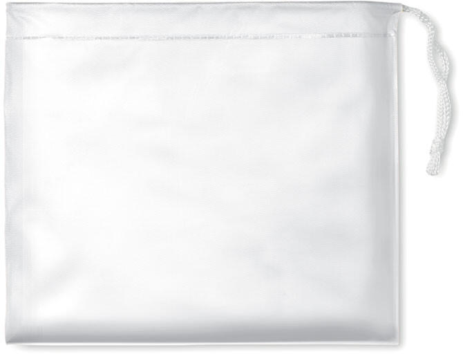 Összehajtható műanyag kapucnis esőkabát tokban.