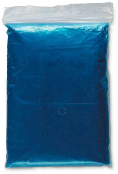 Összehajtható műanyag kapucnis esőponcsó átlátszó tokban.